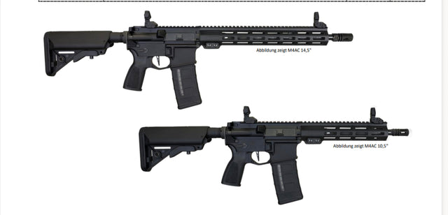 Neu verfügbar sind die M4AC AR-15 Plattformen (10,5″ und 14,5″). Diese Systeme wurden für den professionellen Einsatz entwickelt und überzeugen durch hochwertige Materialien, enge Fertigungstoleranzen sowie eine robuste Auslegung nach militärischen Standards. Läufe aus 4150-CMV-Stahl mit entsprechender Oberflächenbehandlung, hoch belastbare Bolt-Carrier-Groups und M-LOK-Handguards sorgen für Zuverlässigkeit auch unter hoher Dauerbelastung.